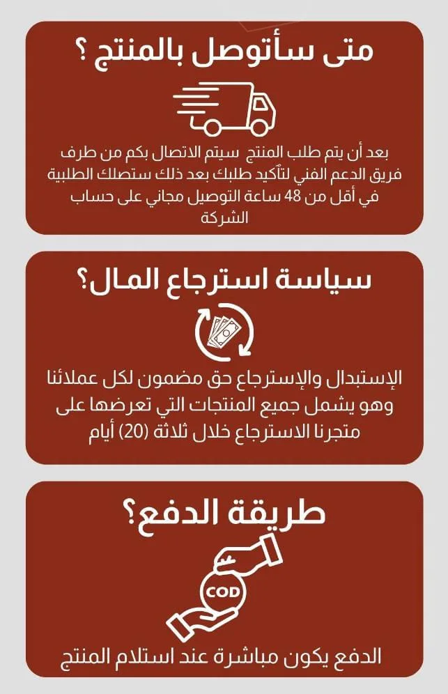 ✔️ فحص قبل الشحن ✔️ خدمة عملاء متوفرة ✔️ استرجاع في حال وجود عيب