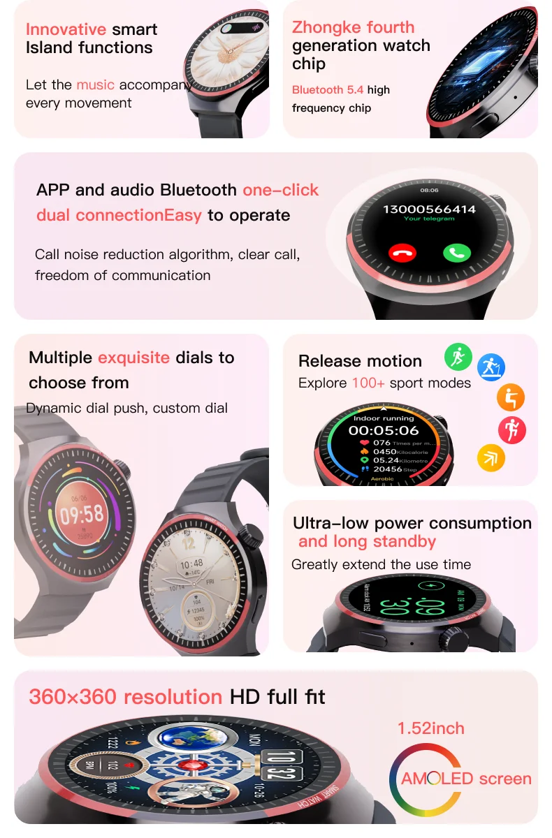 📱 الشاشة: 1.78 بوصة HD 🔋 البطارية: 280mAh 📶 الاتصال: Bluetooth 💧 مقاومة الماء: IP68 📱 التوافق: Android / iOS